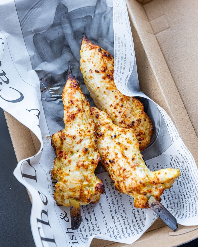 Garlic Sauce, Cheese, Chicken, Green Capsicum, Cucumber Pickle, Turnip Pickle, Corn