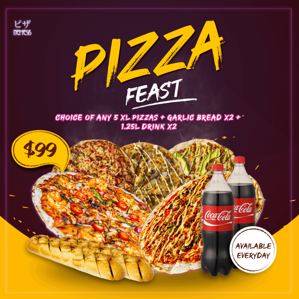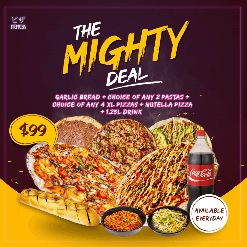 Choice of Any 4 XL Pizzas, Choice of Any 2 Pastas, Garlic Bread, Nutella Pizza and 1.25L Drink
