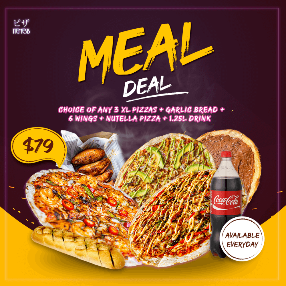 Choice of Any 3 XL Pizzas, Garlic Bread, 6 Wings, Nutella Pizza, 1.25L Drink